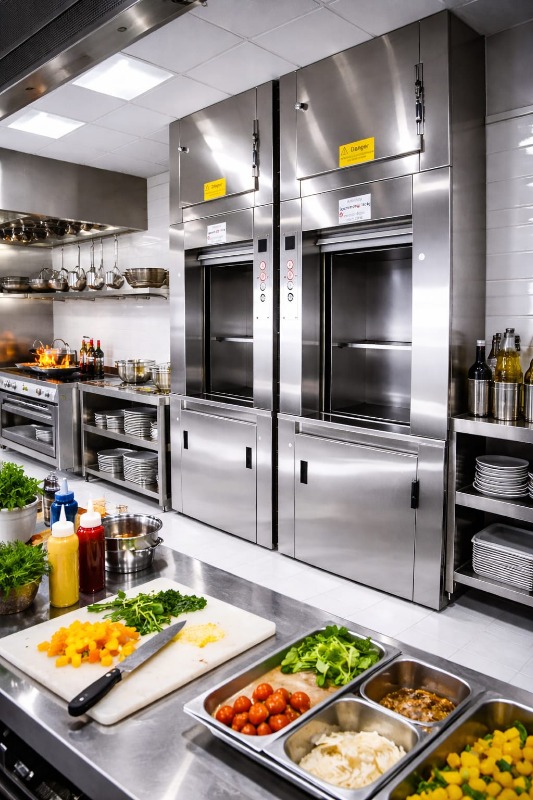 Notre catalogue inclut aussi des monte-chariots spécialement conçus pour le transport de chariots, ainsi que des monte-plats simple ou à double cabine pour optimiser les flux dans les cuisines professionnelles. Chaque installation est réalisée sur mesure après une étude approfondie de vos besoins et de la configuration de vos locaux.